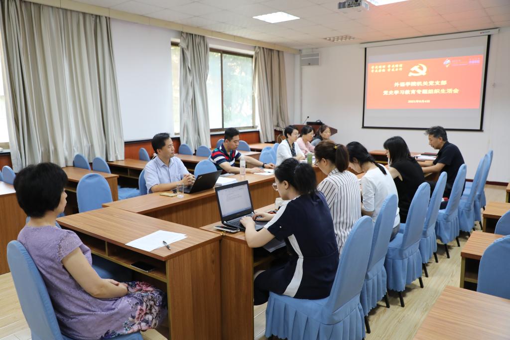 机关党支部在博文楼312会议室组织召开党史学习教育专题组织生活会。会议由机关党支部书记华登峰主持,院党委书记王传永、院长卞建华等机关党支部全体党员参加了会议。