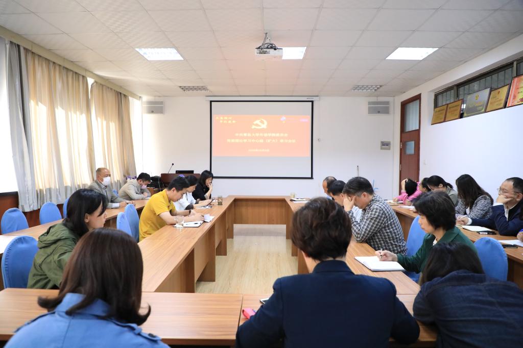 在博文楼312会议室召开党委理论学习中心组(扩大)学习会暨重点工作推进会,学院党委理论学习中心组全体成员,教工党支部书记、各系、办主任,全体辅导员参加,会议由院党委书记王传永主持。