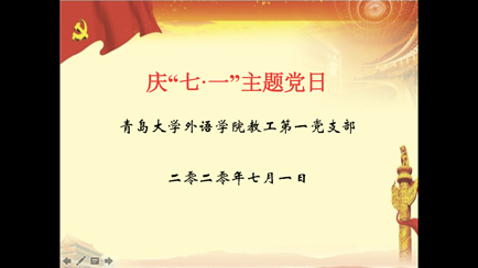 第一党支部的大家庭,自己经历了从一名学生党员到一名教工党员的转变,更加意识到身份转变带来的是更大的责任。作为一名年轻的党员,身边的同志都是她未来学习的榜样,自己必须为成为一名合格、有担当的中国共产党党员而努力。随后,第一党支部党龄最长的党员代表、徐莉娜教授发言,她饱含深情地回忆自己入党以来的人生经历,向年轻同志表达殷切希望,令在座同志十分动容。英语系主任邢富坤教授最后总结发言,在这个值得隆重纪念的日子里,我们共同回顾中国共产党的光辉历程,并对未来充满憧憬:九十九年风华正茂,未来美好无限可期!