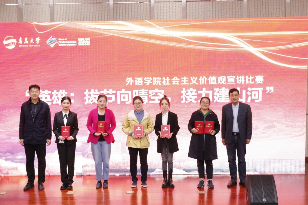 第四届社会主义核心价值观宣讲比赛以“英雄:拔节向晴空,接力建山河”为主题,经过初赛、复赛的激烈角逐,10位选手从80余名参赛者中脱颖而出进入决赛。最终,蔡雨恬、张文馨、郭雨豪等3名同学获一等奖,朱琳、李婧怡、杲逸丹等3名同学获二等奖,杨晓坤、许誉丹、葛翰森、王思圆等4名同学获三等奖。