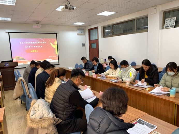 和城阳第十一中学在本科、研究生毕业实习方面合作的可能性交换了意见。通过本次共建党日活动,两个共建支部互联互通、包容共建的关系得到了进一步巩固,达到学思用贯通、知信行合一,并为下一步双方展开基层党建、业务互促等各领域的合作活动打下了坚固的基础。