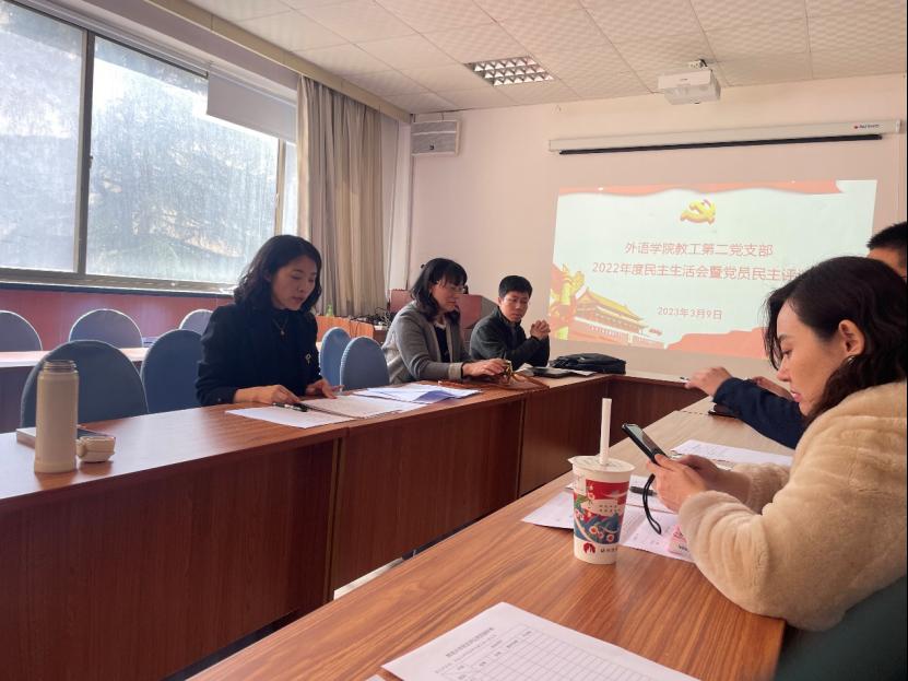 教工第二党支部在博文楼312会议室召开了2022年度组织生活会暨民主评议党员大会。会议由教工第二党支部书记崔花主持,全体党员参加会议。