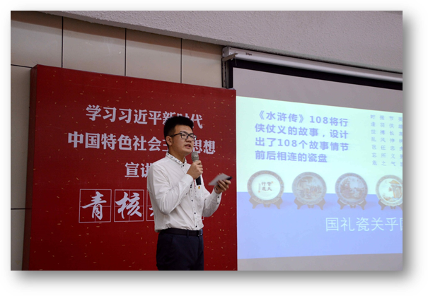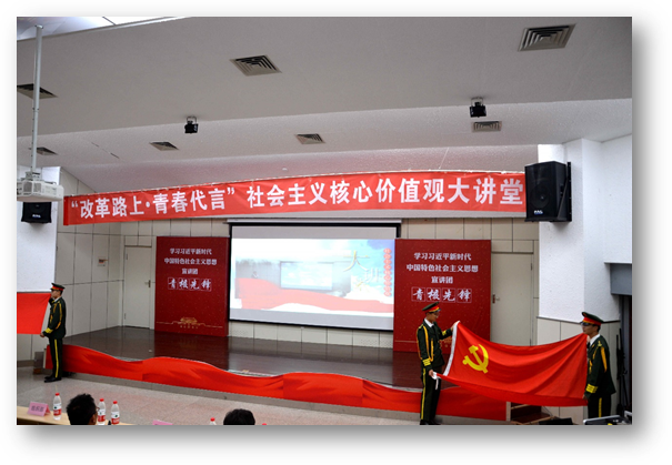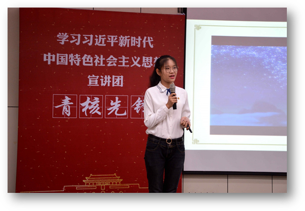 学生党支部为了扎实推进“两学一做”学习教育常态化、制度化,突出专业特色,强化思想引领,结合学院“青年社会主义核心价值观先锋培养计划”,成立“青核先锋”宣讲团,通过红色浸润教育开展《社会主义核心价值观大讲堂》系列党日活动,引导学生树立家国情怀,拓宽国际视野,让社会主义核心价值观入脑入心入魂,为党的事业培养一批优秀的践行社会主义核心价值观的青年先锋。2018年,中国迎来改革开放40周年,一张张“中国名片”在40年间闪耀全球。本次参与大讲堂的青核先锋,作为中国故事的“青春代言人”,透过这些“中国名片”用青春讲述中国,展示中国。
