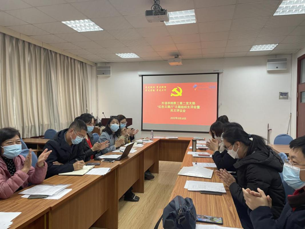 全体党员对一年来自己的工作进行了总结和自我批评。王学博同志说到,自己一直积极参加党员活动,在教学中积极融入课程思政,获批2020年度国家社科基金中华学术外译项目立项。参加国家社科基金重大委托项目“高等学校外语类专业‘理解当代中国’系列教材编写与研究”的子课题“高等学校外语类专业‘理解当代中国’德语系列教材编写与研究”,对自己也是一种精神洗礼,可以有机会对一些重点论述进行深入的思考,对党的十八大以来的新思想有了更深刻的理解。
