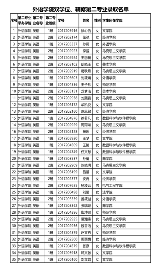 A片无码 2018年双学位、辅修第二专业录取名单