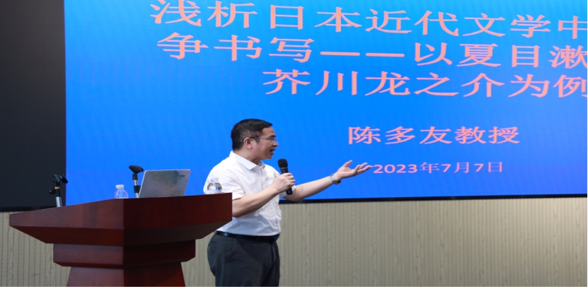 2023年7月7日上午9:00—11:30,广东外语外贸大学日语语言文化学院名誉院长、教授、博士生导师、广东外语外贸大学东方学研究院院长、中国日语教学研究会会长、教育部高等学校外国语言文学类教学指导委员会日语分委员会委员陈多友教授应邀为 A片无码