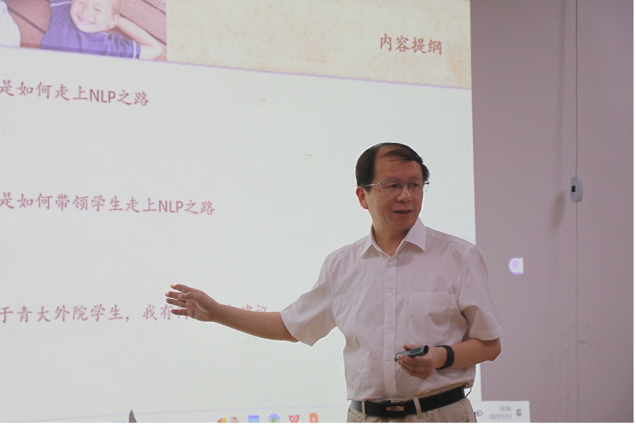 李学宁教授的讲座共分为三个部分。首先,李教授回顾了自己的求学历程和治学道路,以及走上NLP之路的经历。其次,李教授结合江南大学计算机辅助翻译课程的开设,介绍了《简明计算机辅助翻译软件学生操作手册》的编纂过程,以及计算机辅助翻译人才培养的方式方法。最后,李教授从学科发展、课程设置等方面提出了中肯、有效的建议。