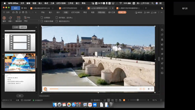 讲座开始,程弋洋教授以“爱斯梅拉达梦中的土地”、“阿尔罕布拉宫的回忆”、“辽远又孤零的科尔多瓦”等多个主题,生动介绍了西班牙南部城市的文化风情与历史往事。程弋洋教授多次朗读诸如洛尔加、博尔赫斯等诗人的优美诗篇让讲述更具感染力,使那些传奇、故事更加美丽动人。