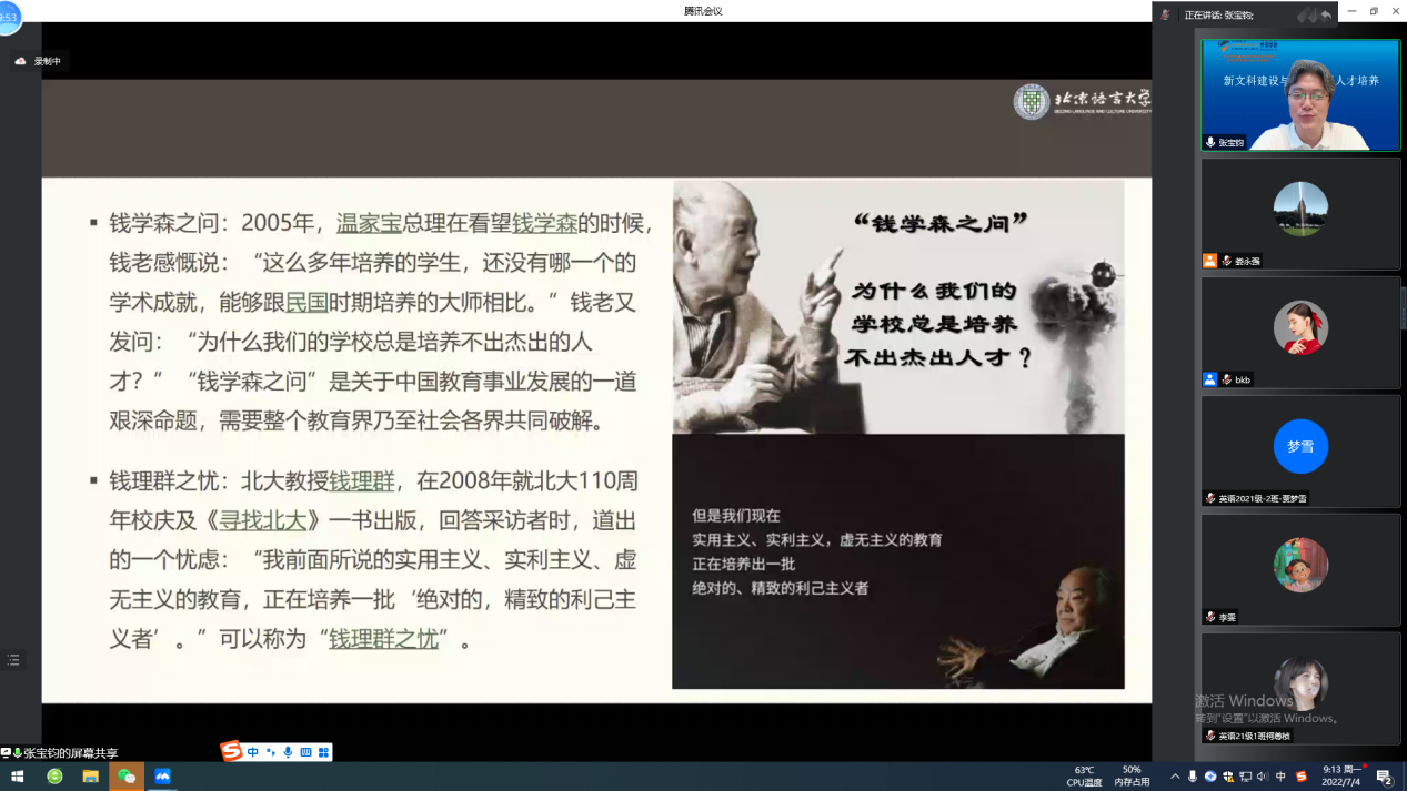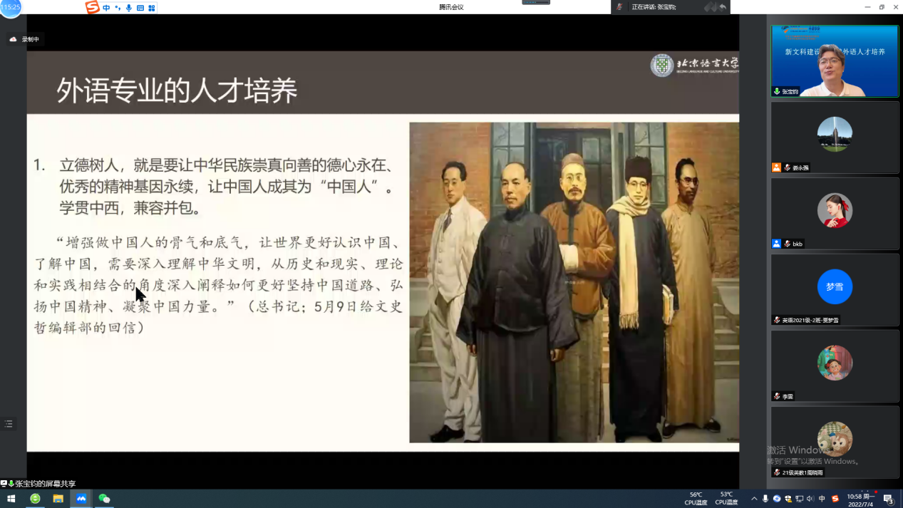 7月4日上午9:00-11:00,北京语言大学副校长张宝钧教授应邀通过腾讯会议为A片无码