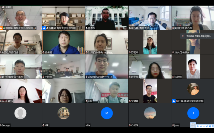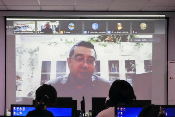 卞建华院长主持,外院师生、“英语大数据虚拟教研室”成员单位以及其他高校师生200余人线上参加,2019级英语大数据班本科生和部分语言学研究生线下集中听讲学习。