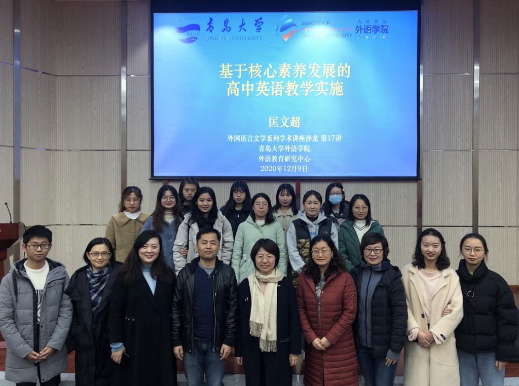 会议中心305报告厅成功举办了“基于核心素养发展的高中英语教学实施”学术讲座。讲座由青岛市高中教研员匡文超老师主讲,英语教育系主任、外语教育研究中心黄芳教授主持。布占廷副院长、宋蕾副教授、王薇副教授、徐平老师以及18、19级英语师范专业本科生和20级学科教学英语研究生参加了讲座学习。