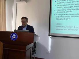 最后,田海龙教授重点谈论了指示性秩序:一个特定的表达方式所指示的社会意义形成的秩序。他指出社会语言学对某些现象的解释往往会提出某些概念,关注最新概念和阐释才能致力于社会的发展。他谈到社会的变化反应语言的变化,语言的变化建构社会的变化。社会语言学的研究应观察社会现象、观察语言。