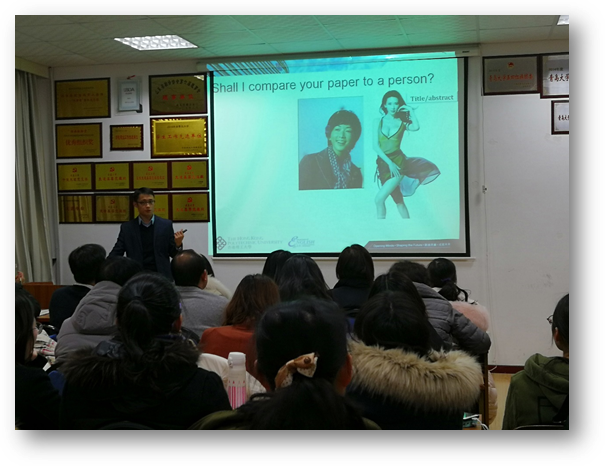 冯教授以一篇关于“香港地区英语教材中的社会价值”的论文为例,讲授如何进行学术研究与学术论文写作。从开始发现问题、提出问题到引言部分的撰写;从选取数据、设计理论框架到分析数据、展示数据;从对研究结果进行讨论、解释到最后提出研究价值与其实际应用,冯教授不仅对其个人研究成果进行了详细展示,而且以此总结概括了学术研究、学术论文写作中应该遵循的思路以及应该注意的问题。讲座最后,冯教授以教学研究为例总结学术研究的四个关键环节:联系实际、发现问题;构建理论框架;分析、解释;实际应用。冯教授本人见解独到、风趣幽默,讲授内容深入浅出、分析透彻,在座师生获益良多。(科研办)