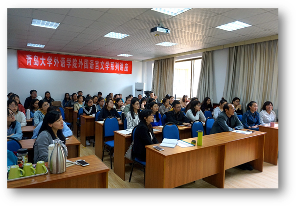 邀请,做客外国语言文学系列学术讲座第52讲,在博文楼312会议室作题为“异样性或者异化效果?——文学作品中称谓的翻译”的学术讲座。讲座由德语系刘沁卉老师主持,学院60余名师生聆听了讲座。