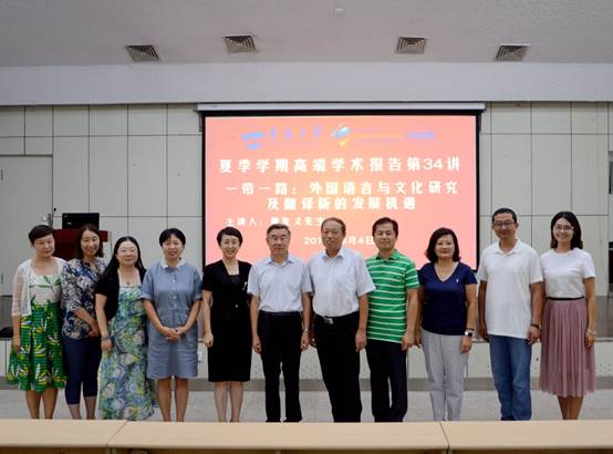在图书馆报告厅举行夏季学期高端学术讲座第34讲。中国译协常务副会长、著名翻译专家黄友义先生应邀作“新时代翻译的新挑战新作为”的高端学术讲座。卞建华院长主持,全校师生270余人聆听了讲座。