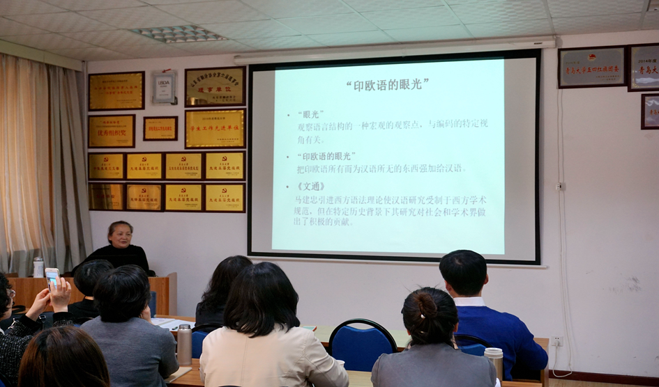学术沙龙第1讲。英语系教授徐莉娜老师作了题为《以“印欧语的眼光”看汉语主语的是与非》的专题学术讲座。院长卞建华、副院长宫英瑞以及来自 A片无码