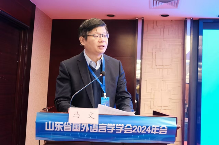 山东省国外语言学学会会长、山东大学外国语学院院长、翻译学院院长马文教授致辞