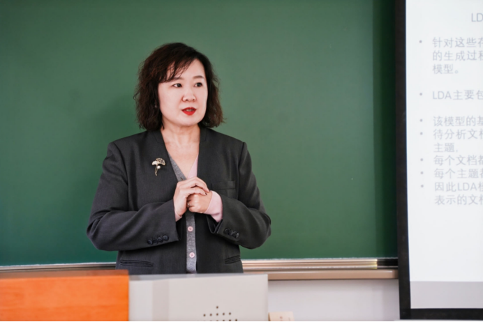 外国文学研究中心主任王薇教授主持分论坛汇报并作发言,发言题目为“基于TF-IDF算法和LDA主题模型的美国移民小说主题内涵挖掘与分析”,研讨话题紧扣研究前沿热点,会场气氛热烈,与会学者互动活跃,互有启发。