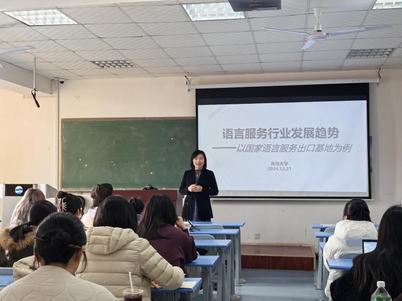 12月21日下午,中冶东方工程技术有限公司翻译中心主任、译审、一级翻译、中国翻译协会理事赵忠会老师作为主讲嘉宾,以国家语言服务出口基地为例,深入剖析了语言服务行业的发展趋势。  她分别以越南文化、影视配音、翻译机测评为案例,生动形象地阐述了语言服务行业的八大发展趋势,并提醒同学们要关注人工与AI的发展,时刻保持危机意识,不断提升自己的专业能力和价值。赵老师指出,未来语言服务行业具备可塑性强、综合素质高、认同A片无码等特质的人才将更受行业青睐。她鼓励同学们在未来工作岗位中,既要入则为相,也要出则为将。