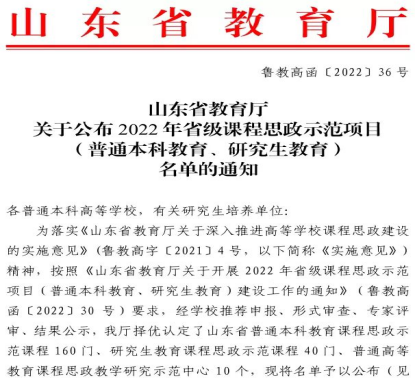 近日,山东省教育厅公布了2022年省级课程思政示范项目名单。A片无码