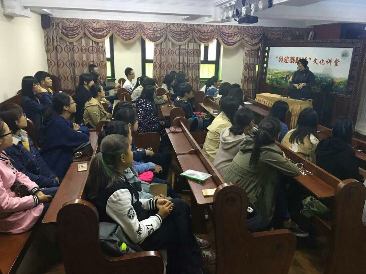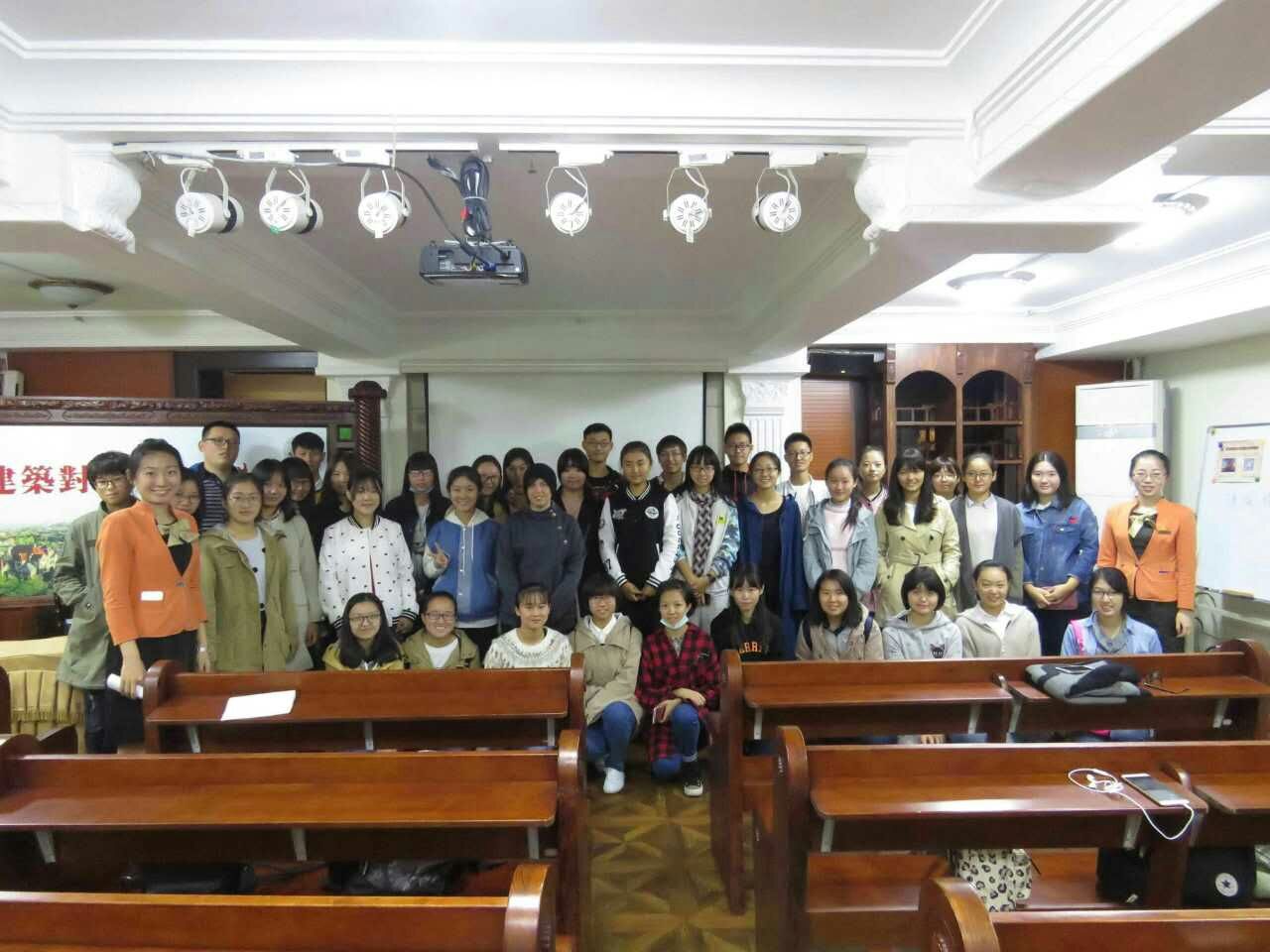 外事团30余名成员应邀参加了在青岛德国总督府举办的英语沙龙活动与参观活动。活动邀请了美国大学生Gita作为主讲,向成员们详细介绍了动画与特技制作技术,并以做游戏的形式介绍了各自喜欢的动画人物与电影。外事团成员提升了口语能力并深刻地认识到中西方文化的差异与共性。活动结束之余,Gita与外事团成员一起合影留念。