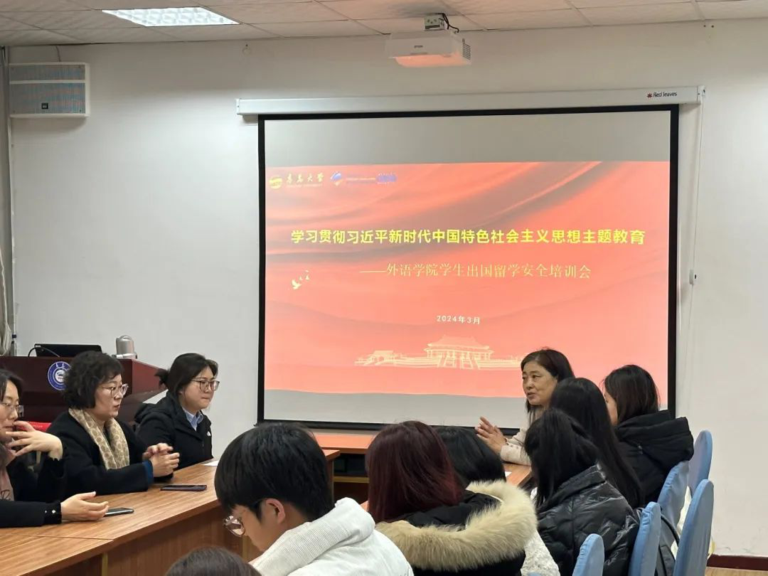 为40余名公派出国学生以及上合英俄创新班的同学举办了第二期出国留学安全培训会。培训会由院团委书记王扬主持,党委副书记王海青、英语系副主任王薇、教师刘晓玲做总结发言。