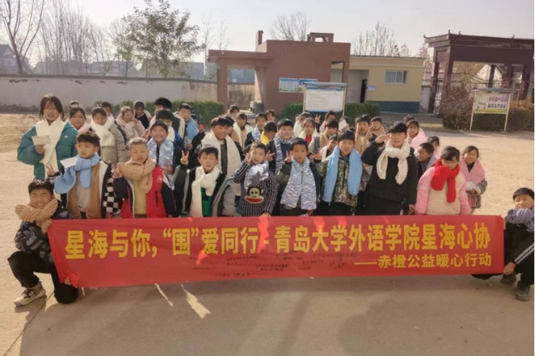小朋友们收到礼物时,无不感受到来自遥远城市的温暖和爱意。这些围巾不仅为孩子们带去实实在在的保暖,更代表了青大学子弥足珍贵的热烈赤诚之心。