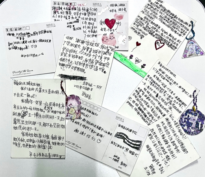 孩子们十分感谢编织围巾的志愿者们,也在明信片上写下了真诚的感谢以及祝愿。