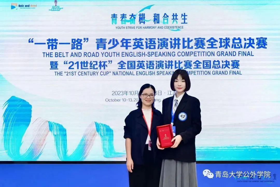 、公共外语教育学院高度重视,精心组织。王筱彤同学表现突出,通过校级、省级层层选拔,顺利晋级,代表山东省参加全国总决赛,凭借扎实的英语功底、强大的思维能力、稳定的临场发挥,从来自全国各高校的88位选手中脱颖而出。