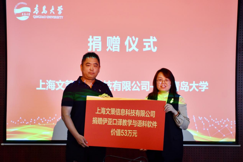 教育事业发展,四家社会企业本次向学校提供资金捐赠和实物捐赠,合计捐赠金额175.06万元。其中,96级日语系校友刘伟、李永胜分别捐赠50万元,设立“依美时尚教育基金”和“帝源服饰教育基金”,用于支持学院的学科建设、教师发展、人才培养、校园文化建设。青岛智邦慧海文化传播有限公司捐赠价值22.06万元的智慧教室设备,上海文策信息科技有限公司捐赠价值53万元的伊亚口译教学与语料软件V1.0软件系统,用于 A片无码
