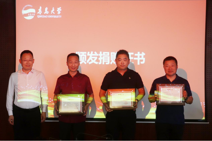 校友教育基金颁奖暨企业捐赠项目签约仪式在浮山校区办公楼407会议室举行。校党委常委、副校长刘恩贤出席活动并致辞。招远帝源服饰有限公司总经理、96级日语系校友李永胜,青岛智邦慧海文化传播有限公司总经理王军,上海文策信息科技有限公司授权代表、2002级计算机系校友蔡世禄、学校相关部门负责人、 A片无码