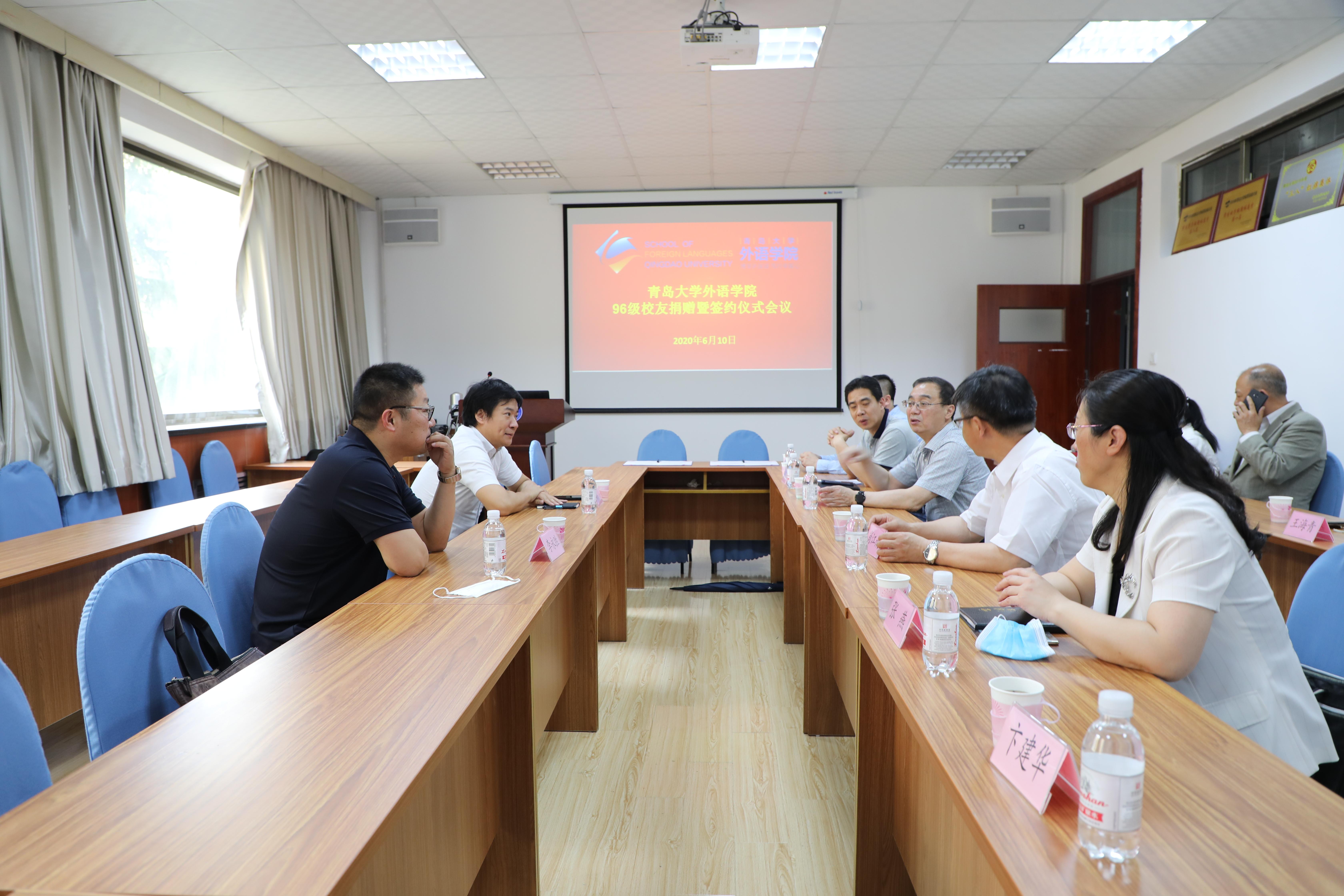 96级日语专业校友、招远帝源服饰有限公司总经理李永胜向母校捐赠设立教育基金签约仪式在博文楼312会议室举行。校党委常委、副校长肖江南、校领导邵彬、校合作发展处、校友工作办公室、 A片无码