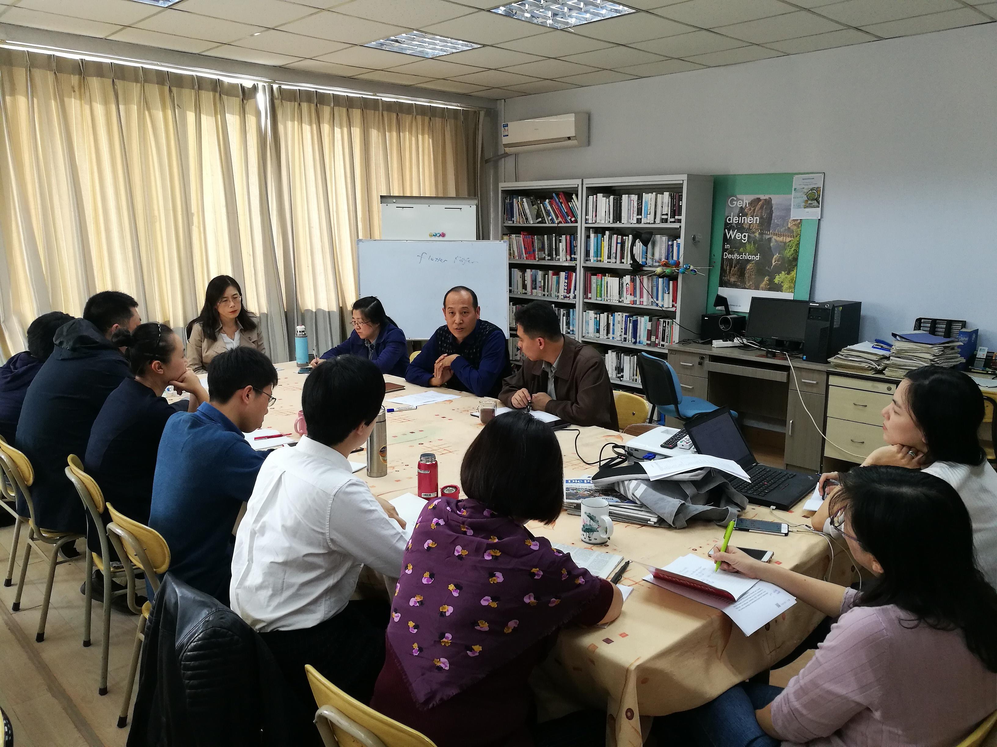 綦甲福首先介绍了教育部的专业“双万计划”和德语系一流专业评审的相关情况。目前德语专业在学校学院的大力支持下,已顺利通过山东省一流专业评审,在全国一流专业评审过程中进展顺利。大家一起学习了刚刚公布的《教育部关于一流本科课程建设的实施意见》,全体人员针对一流课程建设进行了讨论,目前正在筹建慕课和虚拟仿真课程的教师汇报了各自的准备和进展情况。会议针对人才培养方案执行过程中发现的问题进行了讨论,决定自本学期开始结合2018年颁布的《普通高等学校本科专业类教学质量国家标准》以及即将推出的《教学指南》启动人才培养方案的修订预研工作。会议还讨论了本科生导师制、行政管理档案和教学档案的规范化、拟申办的国际会议以及鲁巴教育合作项目——德语系25周年系庆的筹备工作,各位老师谈了自己的看法,并就各自负责的工作进行了交流。