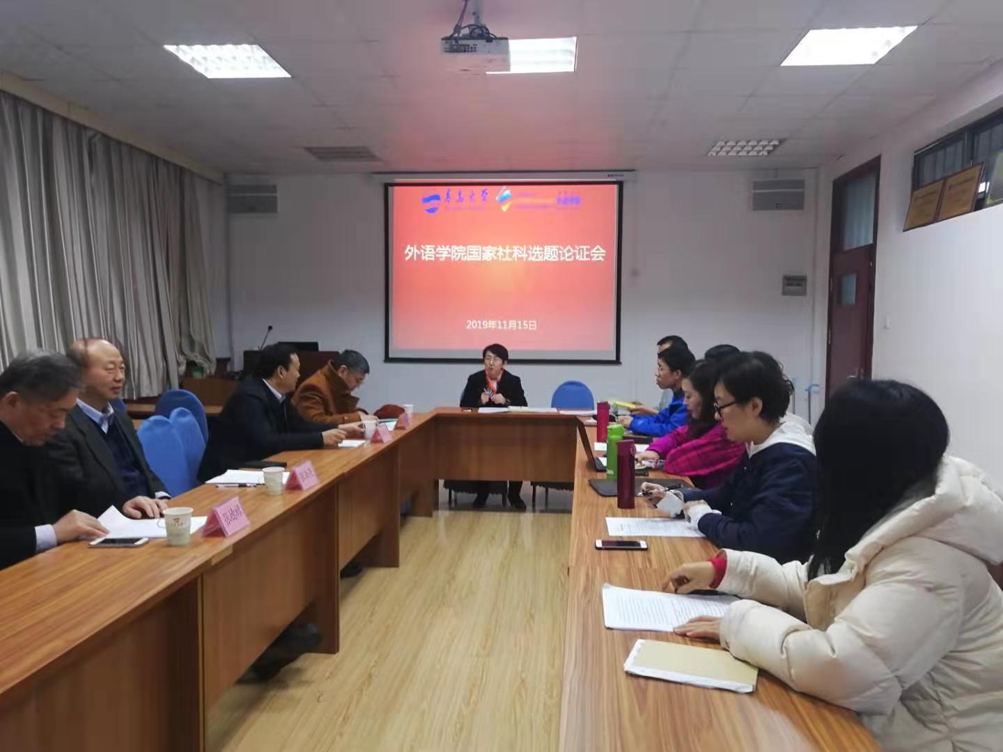 2020国家社科基金项目选题论证会在博文楼312举行,邀请专家有:全国话语语言学研究会会长、中国传媒大学博士生导师李佐文教授;同济大学博士生导师张德禄教授、华东师范大学博士生导师何刚教授、中国政法大学博士生导师张法连教授。论证会由卞建华院长主持。