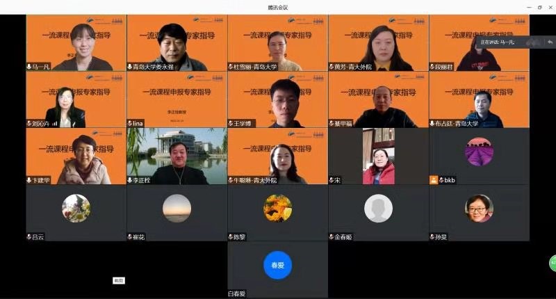 通过腾讯会议举行一流课程申报专家指导会,邀请教育部外国语言文学类专业教学指导委员会英语分委员会委员专家、国家级线上一流本科课程“英美诗歌欣赏”负责人、河北师范大学博士生导师李正栓教授为学院老师一流课程申报进行指导。指导会由卞建华院长和娄永强副院长主持,近30位老师参加指导会。