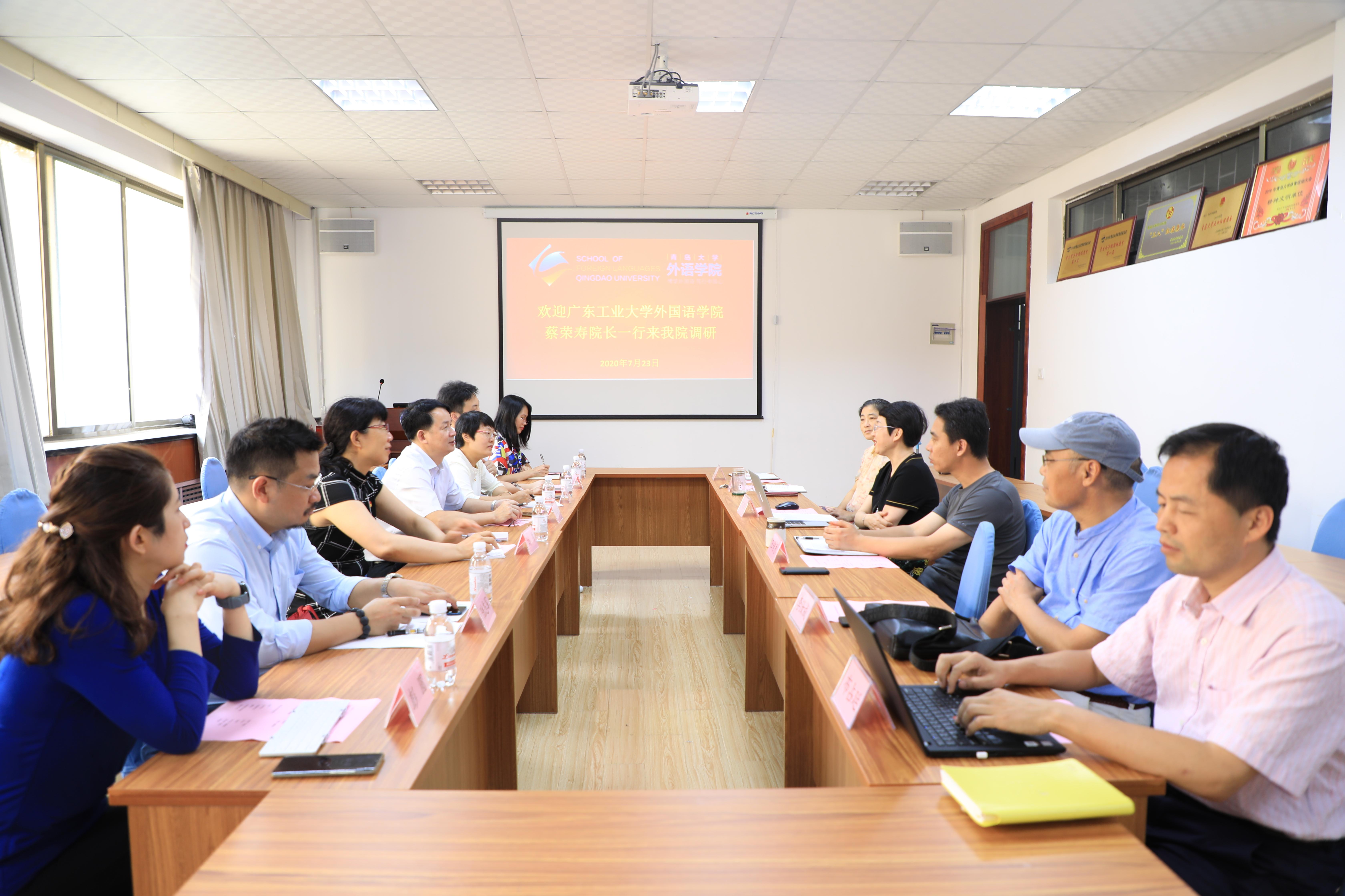 7月23日下午,广东工业大学外国语学院院长蔡荣寿、院党委书记刘伟一行7人来A片无码