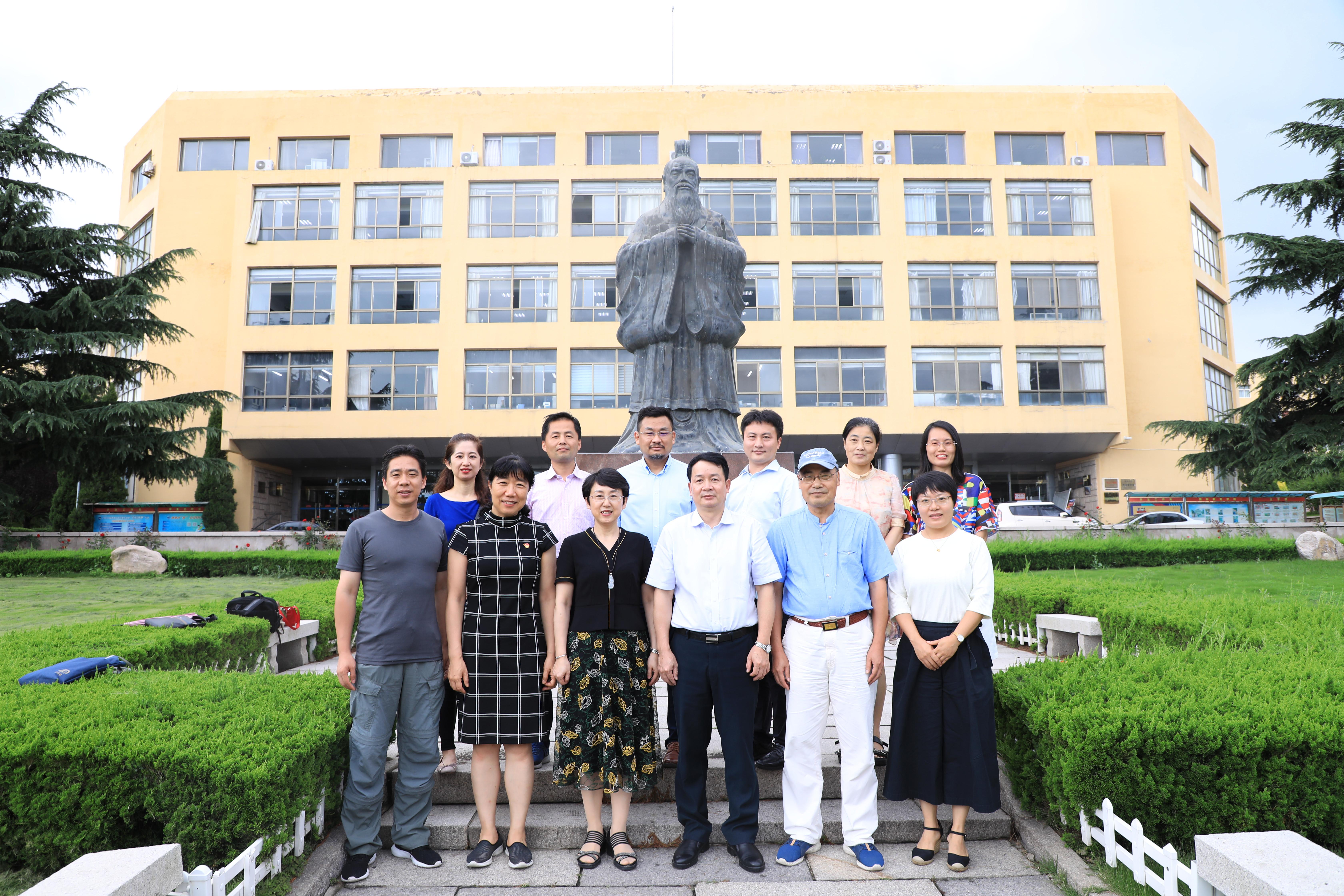 调研交流。院长卞建华、院党委书记王传永、党委副书记王海青、副院长布占廷、英语教育系李汝成教授、党政办主任华登峰在博文楼312会议室与到访客人进行座谈交流。