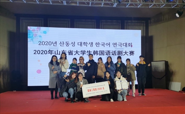与哈尔滨工业大学(威海)荣获二等奖,青岛农业大学与中国海洋大学荣获三等奖,山东师范大学、青岛理工大学、山东科技大学、青岛科技大学荣获鼓励奖。此次大赛为山东各高校韩国语系大学生提供了一个展现自我风采的舞台,也为各高校韩语爱好者带来了一场视觉与听觉的盛宴。