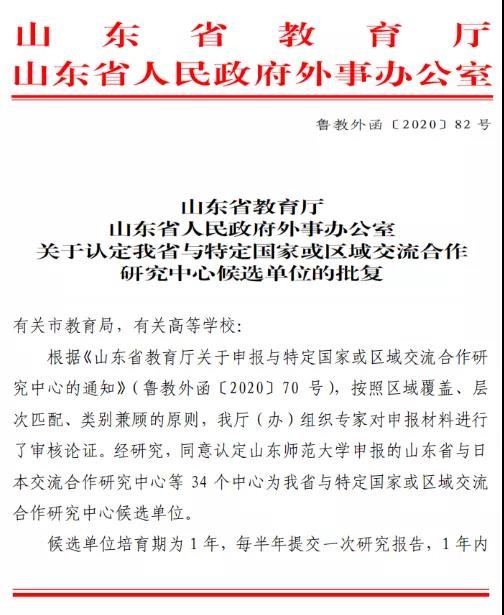 近日,山东省教育厅、山东省人民政府外事办公室公布了《山东省与特定国家或区域交流合作研究中心候选单位认定名单》,A片无码