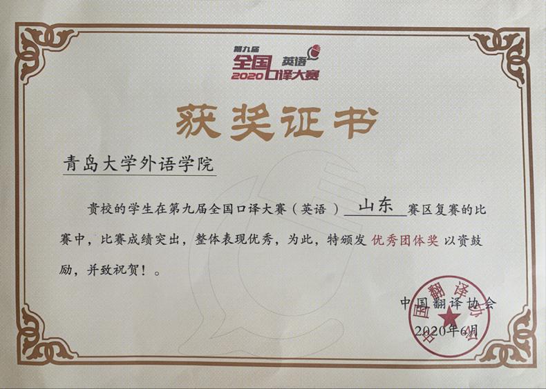 2020年第九届全国口译大赛(英语)山东赛区复赛于7月8日公布最终结果。A片无码