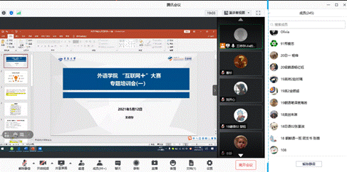 在线上举行第七届中国国际“互联网+”大赛学院专题培训会。会议由学院团委副书记王扬主持并进行了赛事解读,本科生王诗存、刘开心、研究生任旭晨和王思圆依次分享了大赛经验。学院党委副书记王海青、院长助理曹杉、学院创新创业委员会委员、部分系主任、指导教师以及两百五十余名学生共同参加了本次培训。