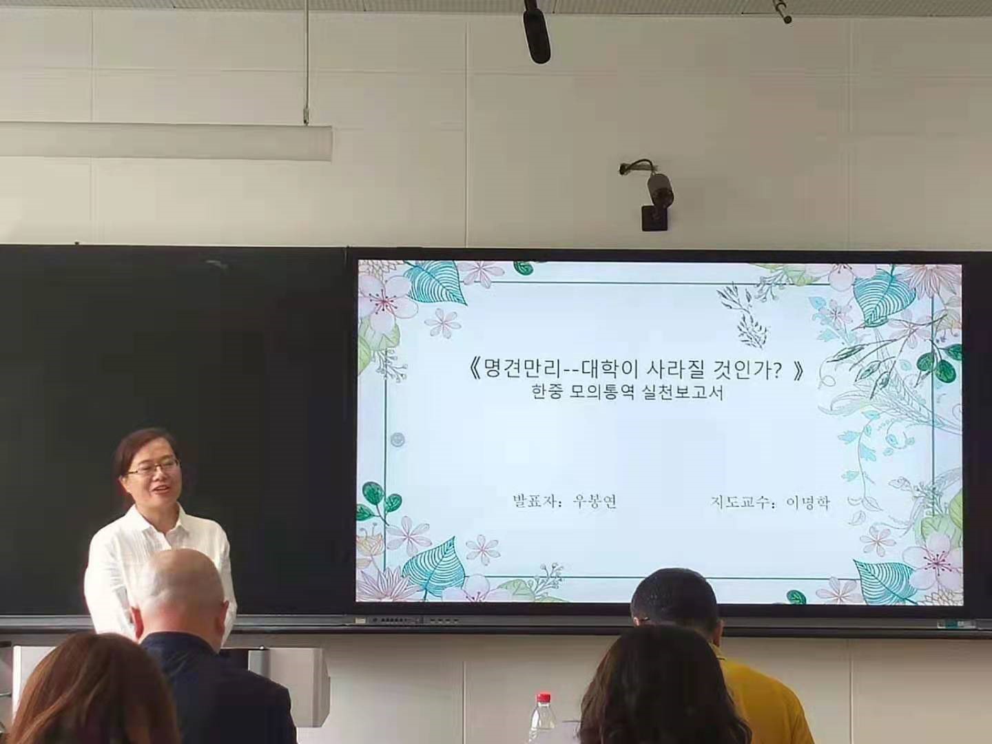 2021年6月18日,朝鲜语系2021届硕士毕业生学位论文答辩会在博文楼414顺利进行。本届答辩会有亚非语言文学(朝鲜语)、朝鲜语笔译、朝鲜语口译三个学科的7名研究生参加,中国海洋大学的任明杰教授担任答辩委员会主席,中国海洋大学李翔宇老师和朝鲜语系硕士研究生导师崔桂花、金春子、金圣花、沈海兰老师担任答辩委员会委员,白春爱、刘振中老师担任答辩委员会秘书,其他年级研究生到现场认真聆听和学习。