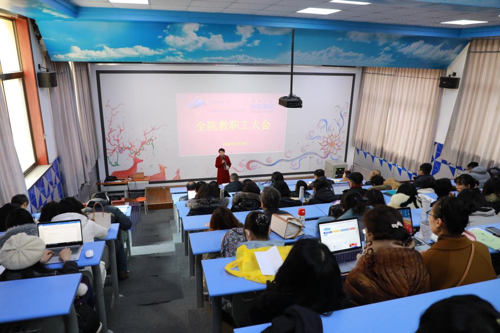 在博文楼218教室召开新学期开学工作会议,布置新学期各项工作。学院全体教师参加了此次会议,会议由院长卞建华主持。