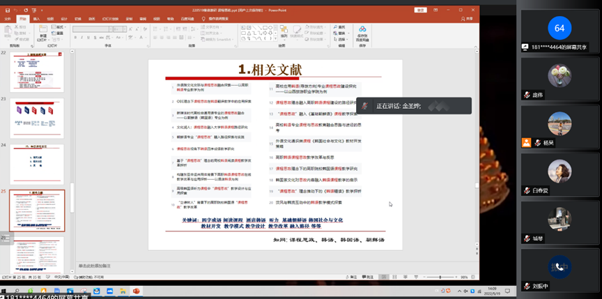 朝鲜语系利用腾讯会议召开了近期工作交流会。会议由系主任崔花主持,朝鲜语系全体教师参加了会议。