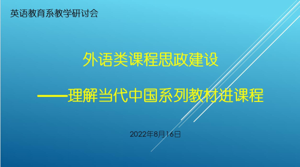 2022年8月16日下午,英语教育系就“理解当代中国”系列教材进课程这一议题召开专题教学研讨会。会议由黄芳主任主持, A片无码