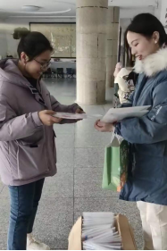 2018级学生代表李心怡、侯斯麒以诗朗诵《星辰大海》为同学们加油鼓劲、表达祝福。随后,肖江南及学院老师们在现场、自习教室和宿舍楼内,为同学们送上“考研加油包”,为考研助力。