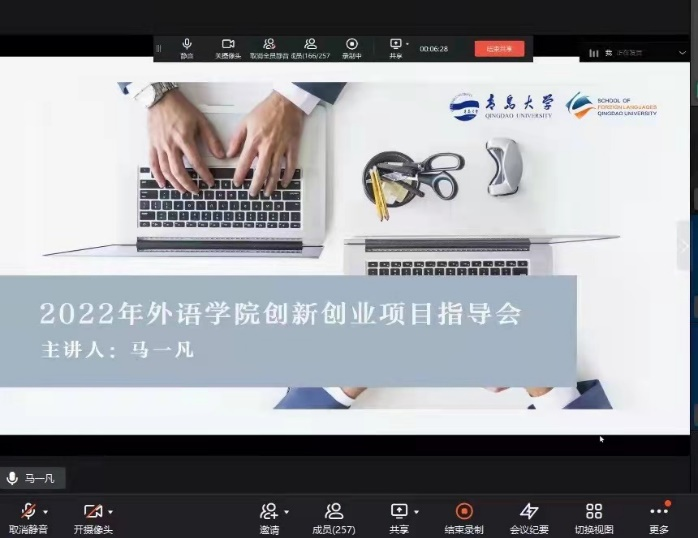 4月28日晚,学院创新创业教育委员会和学院团委在线上联合举行2022年创新创业项目指导会暨第八届“互联网+“大赛院赛启动会。