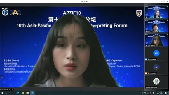卞建华教授带领2020级英语笔译专业硕士研究生张钰、2020级外国语言学及应用语言学硕士研究生李梦洁参加了此次会议并做交流。
