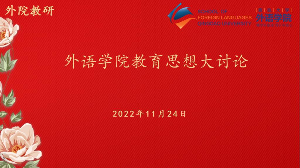 娄永强副院长参加英语系与英语教育系的教育思想讨论会,会议以线上线下相结合的方式展开,两系的全体教师参加会议。娄院长带领教师学习了一系列人才培养与教学改革的文件。他强调,教学要保证与国家社会发展相适应,明确课程专业培养目标;应注重将思政教育落实到课堂中;在课堂教学中,应促进信息技术与教学相融合;注重实践教学对人才培养具有重要性,让学生将在课堂中学到的知识技能运用到实践中;注重教学成效,注重考核改革,进行全过程学业评价,切实体现教师的测评素养;注重学科竞赛,以成果产出导向,使创新创业教育常态化、制度化。同时,注重深化教学方式改革,发展基于团队、问题、案例的教学,促进学生主动学习,将传统课堂教学与探究式教学有机结合。接着,参会教师就课程考核等问题展开了激烈的讨论,并就一些问题达成共识。