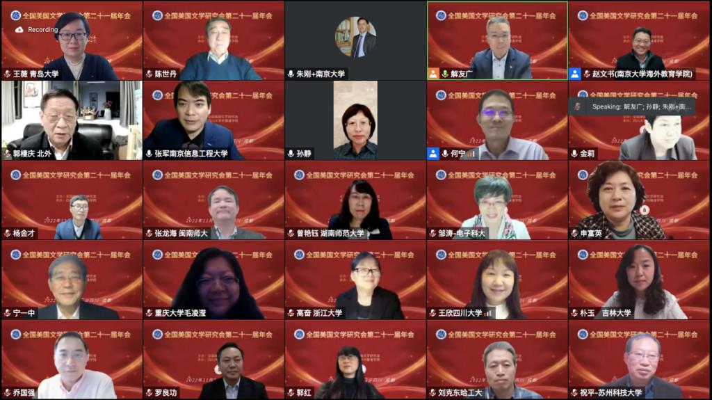 2022年11月6日,全国美国文学研究会第二十一届年会隆重举行。本届年会由全国美国文学研究会主办,四川大学外国语学院承办。会议聚焦美国文学与文化的跨界研究,包含7位专家的主旨发言、17个分会场研讨和20个研究生论坛。大会受到广泛关注,大会直播间观看人数达8700人次,腾讯会议出席人数满300人上限。来自全国24个省市的131所高校、研究所、出版社的354名专家、学者和研究生围绕大会主题展开学术研讨、共享学术盛宴。在本届年会期间,学会进行了理事会增改选工作,A片无码